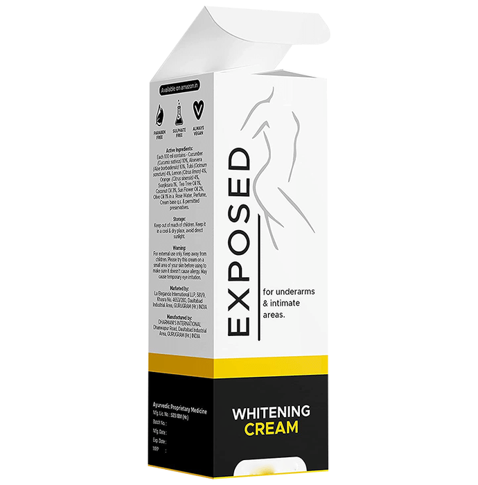 Exposed Whitening Cream for Underarms & Intimate Areas Exposed Whitening Cream for Underarms and Intimate Areas has been crafted especially for the Indian skin. It helps both men and women brighten their underarms and intimate areas skin tone.