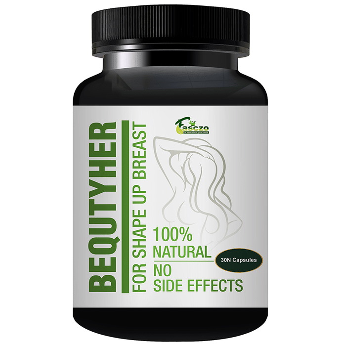 Fasczo Bequtyher Capsule provides aid for ailments and beauty enhancement and personal care for modern women. The mammary glands or breast consist of glandular tissue interlaced and supported by much fibrous tissues and fat and covered by a thick layer of subcutaneous fat. It is used for strengthening, firming up and toning up breast muscles, resulting in an appropriate increase in one's breast size. | Key Ingredients: Avina sativa Labelia inflata Valeriana officinalis Hypercium perforatum | Key Benefits: It helps in the development of breast tissues It is used for strengthening, firming up and toning up breast muscles It has a plumping and skin conditioning properties This helps to lift the body by rejuvenating the skin's support structure | Directions For Use: Read the label carefully before use | Safety Information: Do not exceed the recommended dosage Store in a cool and dry place away from direct sunlight Keep out of reach of children