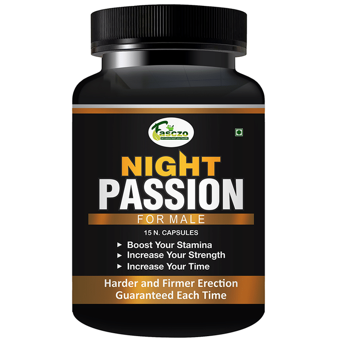 Fasczo Night Passion Capsule for Men Fasczo Night Passion Capsule for Men helps increase an individual's stamina, strength, and athletic performance. It helps add to the vitality of an individual by relieving general weaknesses. It could make you feel energetic and less tired. These Ayurvedic vitality tablets also help improve the immune system by adding to the antibody function.
