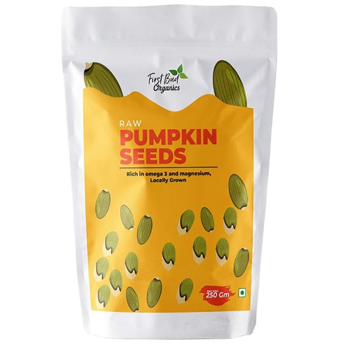 First Bud Organics Raw Pumpkin Seed are rich in magnesium. Healthy magnesium levels are important for your blood pressure, blood sugar levels, as well as heart and bone health. Sourced from the best farms, produced organically with no use of insecticide or chemicals and is also cholesterol and transfat-free. | Key Ingredients: Raw Pumpkin seeds | Key Benefits: Freshly packed and contains no added flavours or chemicals May help to reduce cancer-risk, boosts prostate and bladder health Lowers blood sugar levels, increases good cholesterol and boosts heart health It has high quantities of omega 3, magnesium, antioxidants, iron, zinc and many more vital nutrients that the body requires Can be eaten raw or serve it roasted or salted | Directions For Use: You can eat it raw or serve it roasted or salted. It is also easy to add this as an ingredient to your everyday meal. | Safety Information: Read the label carefully before use Keep out of reach of the children Store in a cool dry place