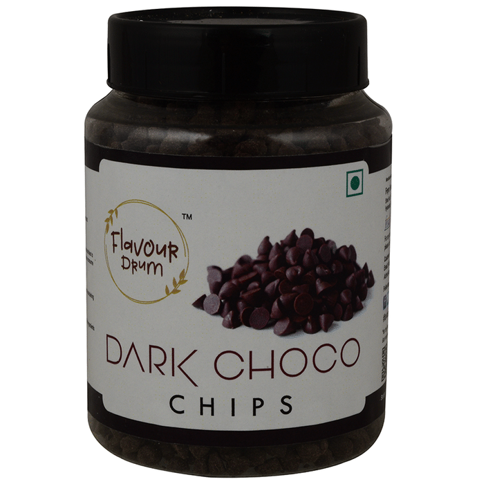 Flavour Drum Milk Choco Chips infuse your baked dishes with a burst of delight. With these magnificent milk choco chips, you can add a touch of luxury to your project. Flavour Drum Dark Choco Chips can be melted and used in sauces or creams. Pies, cakes, crêpes, sundaes, pancakes, cookies, ice cream, waffles, cupcakes, brownies, pudding, and a range of other sweets can all be decorated with it. | Key Ingredients: Milk choco chips | Key Benefits: Flavour Drum Milk Choco Chips are enriched with dietary fibre and infused with cocoa powder that helps to uplift the mood It helps to provide antioxidants to the body which aids in protecting against free radicals These choco chips can be used to decorate cakes, shakes, cookies, pancakes, sundaes and pies | Directions For Use: Use as directed on the label or as advised by the physician. | Safety Information: Read the label carefully before use Do not exceed the recommended dosage Store in a cool and dry place away from direct sunlight Keep out of reach of children