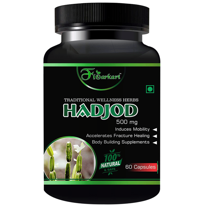 Floarkart Hadjod 500mg Capsule Floarkart Hadjod Capsule is a herbal formation that promotes healthy bones. This helps to accelerate healing of the bone fracture and relieving fracture-related pain. These capsules are useful in preventing osteoporosis and osteoarthritis caused by advancing age and can help maintain the natural health of the joints. This formation is a natural source of calcium. This is a natural bodybuilding supplement.