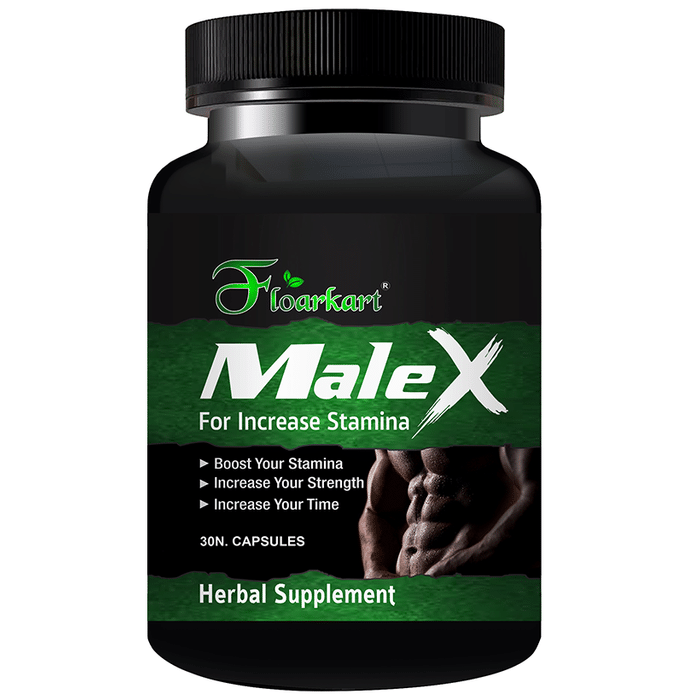 Floarkart Male X For increase Stamina Capsule Floarkart Male X For increase Stamina Capsule can help increase the body's stamina and strength. It contains kesar, a substance that helps to improve blood circulation while also protecting cells from free radical damage. Swarna bhasma is also present, which helps to maintain men's reproductive health.
