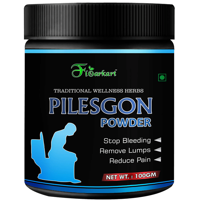 Floarkart Pilesgon Powder Floarkart Pilesgon Powder is useful in the management of bleeding piles and aids in the reduction of pain and inflammation. It contains amla, which supports the digestive system, helps the body regulate bowel movements, and may help relieve symptoms of conditions such as IBS. It also contains harad, which is good for the entire digestive tract and works well for piles, gastrointestinal infections, and diarrhoea.