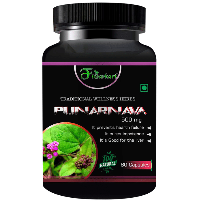 Floarkart Punarnava 500mg Capsule Floarkart Punarnava Capsule is a powerful supplement that offers a variety of benefits for both men and women seeking a healthier life. It is also used as an anti-inflammatory and diuretic agent. It supports the body to expel fluids and help in maintaining kidney function. It acts as a rejuvenating agent, balances Tridosha, reduces inflammation, prevents bloating, improves cardiac health etc