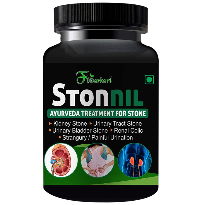 Floarkart Stonnil Capsule is the best combination of effective herbal remedies for the treatment of various types of stone disease and related issues such as kidney stones, urinary tract stones, urinary bladder stones, renal colic and strangury. The medicine contains Phyllanthus Niruri, which can be useful for the treatment of ulcers, urinary tract stones, gonorrhoea, frequent menstruation and diabetes. The medicine is made up of other ingredients that are 100% natural and traditionally used in various Ayurvedic treatments. These capsules can be especially beneficial for people struggling with stone disease. | Key Ingredients: Tephrosia purpurea 150 mg Phyllanthus nirurui 120 mg Eclipta alba 60 mg Andrographis paniculata 60 mg Picrorrhiza kurroa 60 mg Solanum nigrum 20 mg | Key Benefits: These capsules are an Ayurvedic treatment for kidney stones, urinary bladder stones and urinary tract stones This medicine is completely natural and is safe to use It may also be beneficial for strangury/painful urination and renal colic It can also help in the ailment of related issues such as dark urine, nausea, fever and pain in the upper abdomen | Directions For Use: Take 1-2 capsules twice a day, with plain water after meals or as advised by the physician. | Safety Information: Store in a dry and cool place Keep away from children's reach Do not use if the seal is damaged or missing Keep the medicine in its original package and container