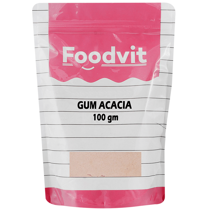 FoodVit Gum Acacia Powder can be mixed into water and drunk as a beverage. Acacia fibre is claimed to help decrease cholesterol, control blood sugar, and protect against diabetes due to its high soluble fibre concentration. It is also reported to help with weight loss by suppressing appetite, relieving diarrhoea, and promoting weight loss. It can be found in mouthwash and other dental treatments to help prevent gingivitis. Acacia powder can also be used as an ingredient in natural toothpaste. It contains water-soluble dietary fibres, which are not only good for your diet but also help you manage your cholesterol. | Key Ingredients: Gum acacia powder | Key Benefits: FoodVit Gum Acacia Powder can be utilised in dental products like mouthwash to reduce gingivitis. Acacia powder can also be used in herbal toothpaste It contains water-soluble dietary fibres, which are not only excellent for your diet but also aid in cholesterol management It's good for reducing irritation and inflammation, as well as alleviating stomach and throat pain Iit is used in solutions to coat the throat and protect the mucus from irritation | Directions For Use: Use as food ingredients for home hold and commercial food preparation. | Safety Information: Read the label carefully before use Store in a cool and dry place away from direct sunlight Keep out of reach of children