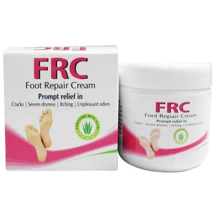Frc Foot Repair Cream Frc Cream is a foot repair cream formulated to rehabilitate the cracked and aching feet. It is a unique formula which penetrates in deep layers of skin to provide relief from dryness, cracks, itching and unpleasant odours. anti-ageing nature of cream rejuvenates and ensures the overall well-being of the heels. It has aloe vera as its main constituent which helps in giving a new life to the feet.