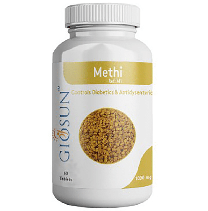 Giosun Methi 1000mg Tablet Giosun Methi Tablet is an ayurvedic supplement made from natural ingredients. It helps in controlling diabetes and dysentery.