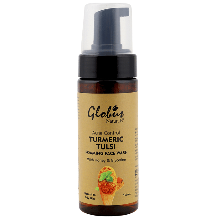 Globus Naturals Tulsi Turmeric Foaming Face Wash Globus Naturals Tulsi Turmeric Foaming Face Wash It is a gentle skin cleanser formulated with haldi, tulsi and honey that helps hydrate and revitalise the skin. These natural ingredients help reduce acne, breakouts and dark spots, giving your skin a natural radiance and glow.