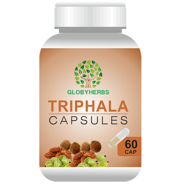 Key Ingredients of Globyherbs Triphala Capsule: Amla Behada Harada | Key Benefits of Globyherbs Triphala Capsule: Promotes weight loss Controls diabetes Improves digestion Detoxifies the body Boosts the immune system Helps with constipation Promotes eye health