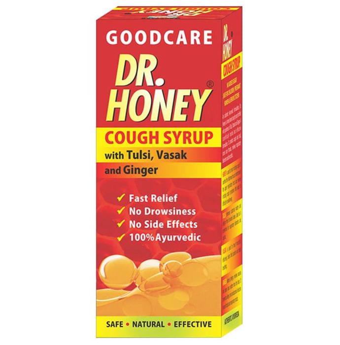 Goodcare Dr. Honey Cough Syrup Goodcare Dr. Honey Cough Syrup contains Honey, Tulsi, Vasak, and Ginger as major ingredients Key benefits/uses of Goodcare Dr. Honey Cough Syrup: Role of active ingredients: - Used to treat a cough. It soothes the inflamed mucous membrane of the upper respiratory tract and relieves irritating cough symptoms that lead to difficulty in swallowing - Removes catarrhal matter and phlegm from bronchial tubes. Used as a preventive for respiratory disorders and coughs. It is also beneficial in the treatment of respiratory system disorders. It is an effective remedy for bronchitis, asthma, influenza, cough, and cold - Treat bronchitis effectively, clears thick sputum and helps to breathe - Expels phlegm, relieves nausea and clears toxic matter from the body. It prevents allergic and antibacterial infection in sore throats and respiratory tracts Directions for use/Dosage: For Child: 1 teaspoonful twice daily or as directed by the physician For Adult: 2 teaspoonfuls twice daily or as directed by the physician Indications: Cough, Cold, Bronchitis, Respiratory disorders in adults and children Safety information: - Do not exceed the recommended dose - Read the label carefully before use - Keep out of the reach and sight of children