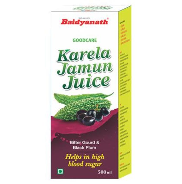 Goodcare Karela Jamun Juice Goodcare Karela Jamun Juice is 100% pure, natural and free from any synthetic flavour and colour. It contains many vitamins and minerals that your body needs for well-being. It is an expectorant and a good remedy for cough and cold and gives relief to asthmatic patient. It is helpful in menstrual disorders. It has high anti-bacterial properties.