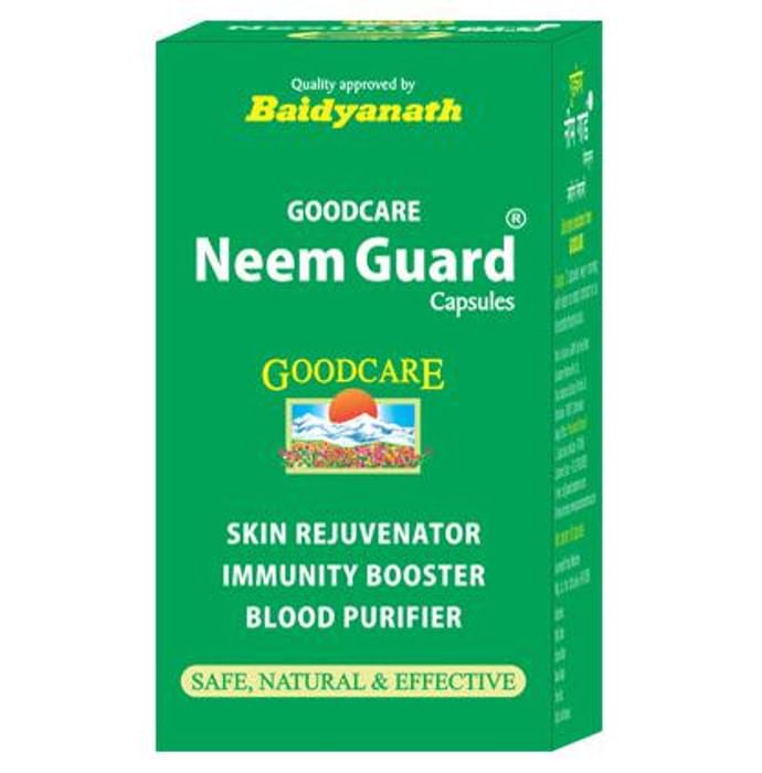 Goodcare Neem Guard Capsule is a potent antifungal, antipyretic, antibacterial and anti-inflammatory. It includes its ability to treat dandruff, soothes irritation, protects the skin, boosts the immune system, reduces inflammation, speeds wound healing, treats gastric conditions, slows the aging process, improves the health of hair and scalp, maintains sexual organ health. | Key Ingredients: Neem extract | Key Benefits: It acts as anti-fungal Treats skin infections Treats acne Treats dandruff Effective anti-bacterial agent Boosts immune system | Directions For Use: Take Goodcare Neem Guard Capsule as directed by physician | Safety Information: Read the label carefully before use Do not exceed the recommended dose Keep out of the reach of children