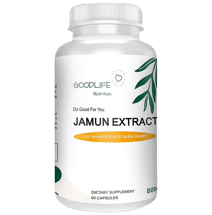 Goodlife Nutrition Jamun Extract Capsule Goodlife Nutrition Jamun Extract Capsule provides the goodness of Jamun, a nutritious seasonal fruit found in abundance in Asia. Jamun is loaded with antioxidants and flavonoids essential for a healthy body and mind. As compared to other fruits, Jamun extract provides lesser calories, making it the perfect choice in a healthy diet. Goodlife Nutrition Jamun Extract is known to relieve and help stomach pain. The capsule works as a carminative, anti-scorbutic and diuretic. These capsules are helpful in diabetes management by controlling blood sugar and in the proper functioning of the liver.