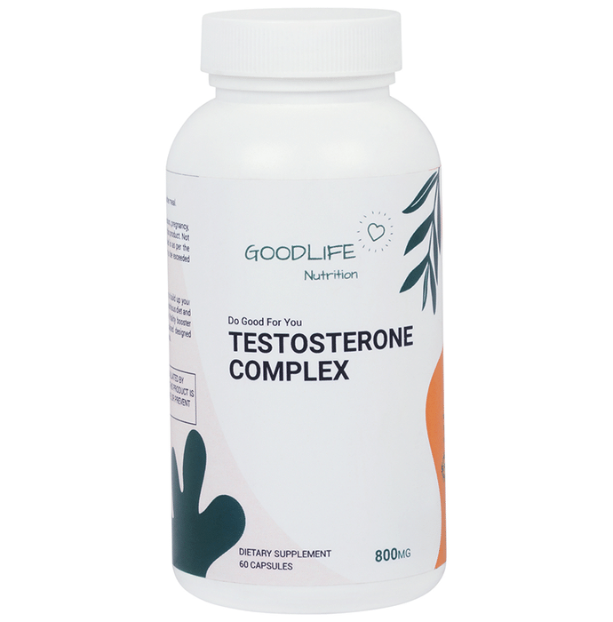 Goodlife Nutrition Testosterone Complex Capsule is a proprietary blend of high-potency herbs and nutrients formulated to improve your mental capability, turn your energy into a vigor supply, and even burn extra fat and increase lean muscle mass. The proprietary formula contains an array of ingredients to support healthy testosterone levels, including herbs that have been used historically and clinically tested ingredients. Each tablet supplies the equivalent of 3 to 10 times the normal daily dose of these ingredients, yielding the high potency required for the most effective results. | Key Ingredients: Vadarikanda extract Kaunch Beej extract Tribulus Terrestris extract Safed Musli extract Ashwagandha extract | Key Benefits: | Enhance stamina and strength - No steroids, additives and unwanted impurities. This new product contains natural nutrients that have been clinically proven to increase testosterone levels by 10 - 15%, putting you well on your way towards reaching your goals of maximum strength and better stamina, as well as towards gaining muscle mass and a healthy lifestyle | Helps to gain leaner, stronger, and better physique - Testosterone Complex is a complex blend of ingredients that can help to provide you with a leaner, stronger, and overall better physique | Enhance your performance level - It is formulated with powerful, natural ingredients that help convert your body's free testosterone into a more potent androgen hormone | Directions For Use: Take 1 serving 30 minutes before each meal – 30 days. | Safety Information: Read the label carefully before use Store in a cool and dry place away from direct sunlight Keep out of reach of the children Do not exceed the recommended dosage