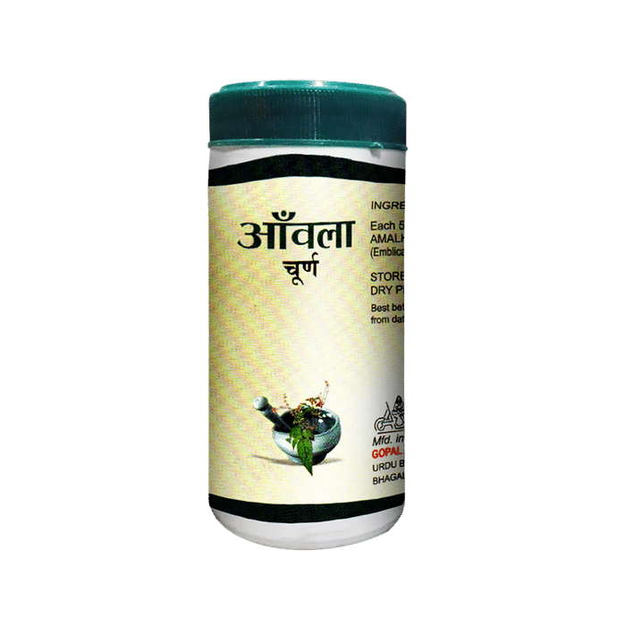 Gopal Ayurved Udyog Amla Churna It is a supplement formulated with amla that can support your immune system and overall well-being. Amla or Indian gooseberry is loaded with nutrients and is the richest natural source of vitamin C. It is one of the best rasayanic tonics that can help brighten skin, purify the blood and improve eyesight. It may help improve digestion, relieve acidity and control blood glucose levels. In addition to that, it helps prevent aging and greying of hair. It also helps to improve stamina and the body’s defense against any infections. | Key Ingredients: Amla | Key Benefits: It is a supplement formulated with amla that can support your immune system and overall well-being Amla or Indian gooseberry is loaded with nutrients and is the richest natural source of vitamin C It is one of the best rasayanic tonics that can help brighten skin, purify the blood and improve eyesight It may help improve digestion, relieve acidity, and control blood glucose levels It helps prevent aging and greying of hair It also helps to improve stamina and the body’s defense against any infections | Directions For Use: Read the product label carefully | Safety Information: Read the product label carefully before use Store in a cool and dry place away from direct sunlight Keep out of reach of children Do not use if the product appears to be tampered with or the seal is broken Best before two years from the date of manufacture