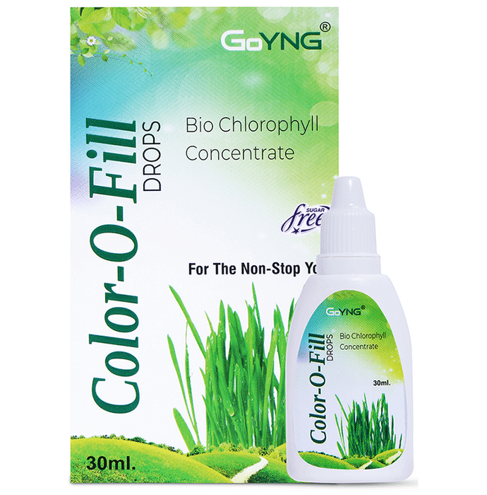 GoYNG Color-O-Fill Drop Sugar Free GoYNG Color-O-Fill Drop Sugar Free is chlorophyll drops and can manage nutrition and immunity to fight diseases, help detox, energy, heal, and break addictions. It may manage inflammation, lack of energy, and fatigue. It is healthy drops extracted from the green pigments of wheatgrass. Additionally, it is a certified formulation and is certified by CMIRD, manufactured in a GMP certified factory, and ISO certified. The drop in a natural supplement with no side effects. It does not contain sugar and is safe for all.