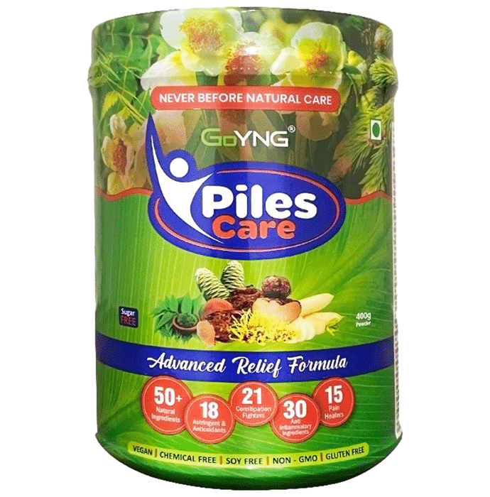 GoYNG Piles Care Powder GoYNG Piles Care Powder contains more than 50 natural herbs, 18 astringent, 21 constipation fighters, 20 anti-inflammatory ingredients, and 15 pain relief ingredients in a never-before combination that can help provide relief from piles and other related symptoms. It may also be used in managing constipation, bloating, and weight gain.