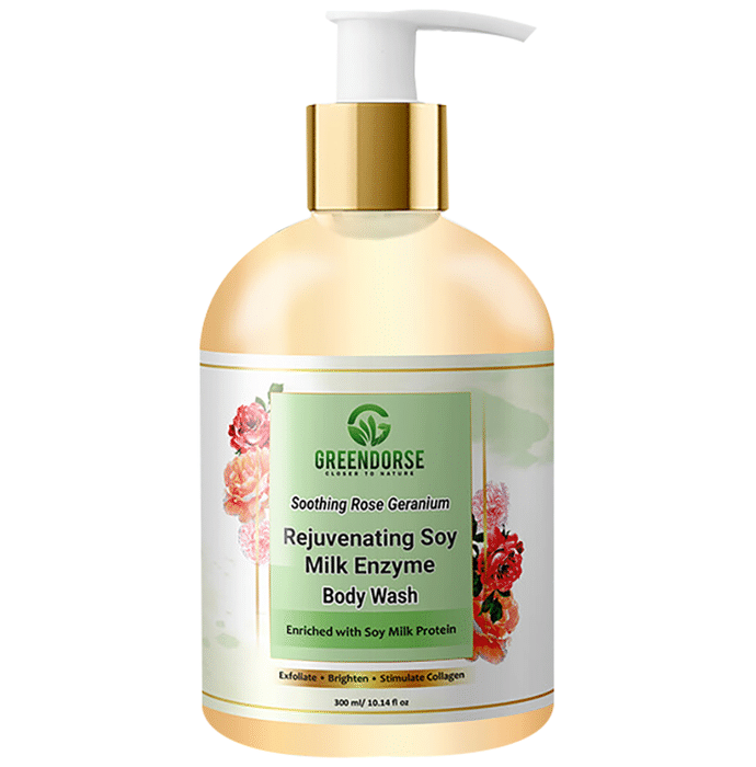 Greendorse Rejuvenating Soy Milk Enzyme Body Wash Greendorse Rejuvenating Soy Milk Enzyme Body Wash comes with the goodness of natural ingredients such as orange oil, this body wash gives you healthy glowing skin. Regular use leaves your skin feeling soft and smooth. Its soap-free formula gently cleanses your skin for visibly fresher and radiant skin, every time you shower. Soy protein helps in reducing pigmentation due to sun exposure and hormonal changes. This protein increases collagen synthesis, which contributes to the firmness, tone, and texture of the skin. It strongly helps even out skin tone.