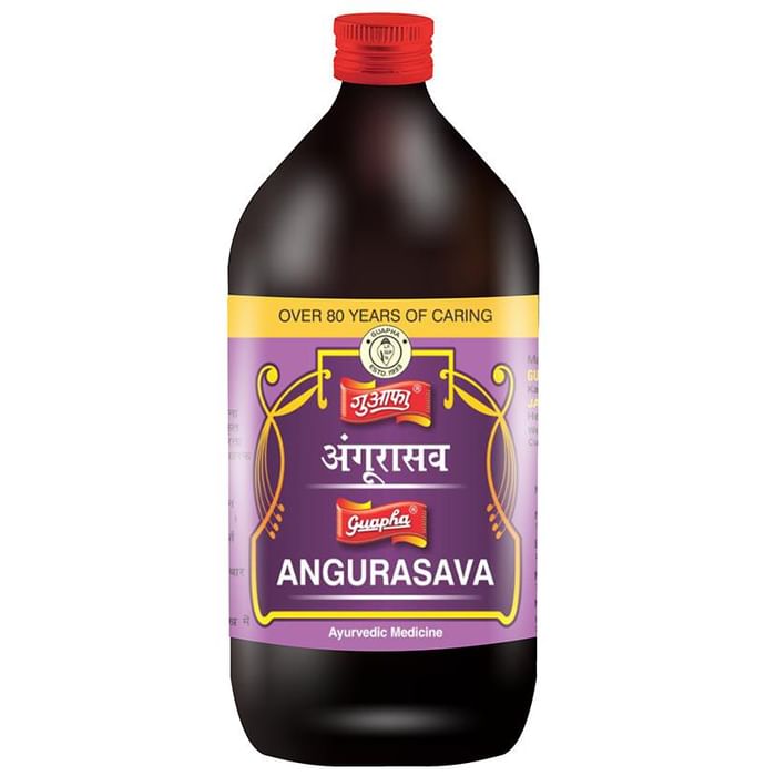 Guapha Ayurveda Angurasava is basically used in the treatment of general debility and loss of appetite or anorexia. It helps to treat cough, gives strength to the body, and relieves allergic and viral respiratory infection. The formulation facilitates relief in the case of indigestion which refers to a discomfort feeling in the upper part of the abdomen. It occurs immediately after eating. Indigestion is not a serious health problem unless it is accompanied with other symptoms such as weight loss, difficulty in swallowing, nausea, vomiting. Moreover, it also helps to improve the lungs health. | Key Ingredients: Clove (Eugenia caryophyllus) Jaiphal (Myristica fragrans) Javitri (Myristica fragrans) Nagkesar( Mesua ferrea) Kankol (Piper cubeba) Sheetal Chini (Piper cubeba) Peepal (Piper longum) Peepala mool | Key Benefits: Helps to improve the stomach function Provides relief in the case of general debility Helps to give strength to the body Used in the treatment of cold and cough Helpful in the treatment of respiratory infection It helps to strenghten the lungs Helps to relieve Nausea and vomiting | Directions For Use: As directed by the physician. | Safety Information: Read the label carefully before use Store in a cool dry place away from direct sunlight Keep out of reach of the children Use under medical supervision Do not exceed the recommended dose