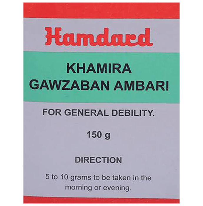 Hamdard Khamira Gawzaban Ambari is anxiolytic, anti-convulsant and nervine tonic used for general debility. It helps to stregnthen the nervous system health and relieves the signs of anemia including fatigue and exhaustion. Improves nerve health and improves overall energy levels in the body. | Key Ingredients: Borago Officinalis Coriandrum Sativum Bombyx Mori Cocon Salvia Haematodes | Key Benefits: Ayurvedic medicine helpful in the management of nervine weakness, mental fatigue, stress and insomnia Useful in ailments causing heart palpitations and provides relief from vertigo and migraines Helps to relieve stress and improves memory and concentration levels, it also contains anti-inflammatory properties which helps reduce inflammation in the body | Directions For Use: Dosage: Adults should be given 5 grams and children 1-3 grams according to age, with milk or water in the morning before breakfast or when required. | Safety Information: Read the label carefully before use Store in a cool dry place away from direct sunlight Keep out of reach of the children Use under medical supervision