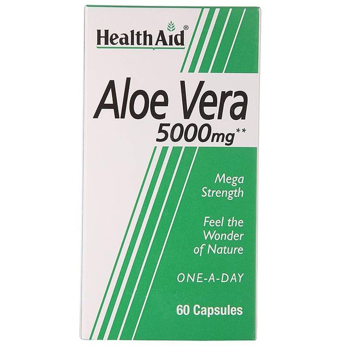 Healthaid Aloe Vera Capsule contain Aloe Vera which is also known as nature's miracle plant has been used through the centuries both internally and externally for its proven and wide ranging beneficial properties to the human body.HealthAid Aloe Vera Capsules are specially manufactured using fresh Aloe Vera concentrate hermetically encapsulated to provide a potent formulation that is rich in nature's natural wonder. Used externally HealthAid Aloe Vera gives the body a smooth all over feel, glowing complexion and harmonisation of the skin condition and body tone. Used internally HealthAid Aloe Vera also harmonises the body system especially the colon; radiating outwards to reflect positively on external appearance and visual health. Key Benefits: People with digestive, ulcerative conditions or Irritable Bowel Syndrome (IBS) Those who have inflamed, cracked or chapped skin and those with severe problems such as psoriasis Adults and children who have sunburn, scars or burns as capsules can be pierced and used topically key Ingredients- Aloe Vera Gel Extract, Bulking Agent (soybean oil,vegetable shortening), Capsule Shell [gelling agent (gelatine), humectant (glycerol, purified water)], Anti-caking Agent (silica). Direction of use: Adults and children over 6 years of age, one capsule daily with food. Adults can increase up to two capsules daily if required. Capsules can be sawallowed whole with water or used externally. To apply externally, pierce capsule and squeeze the contents onto the skin, massaging until fully absorbed. Do not exceed recommended daily intake unless advised by a suitably qualified person. Use under medical supervision