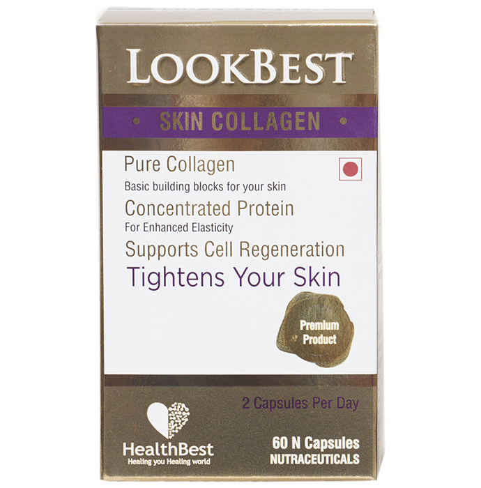 HealthBest | Lookbest Skin Collagen Capsule is formulated with collagen which is a structural, fibrous protein found in humans and animals, particularly in areas such as tendons, bones, skin and cartilage. It serves as a connective tissue that makes up roughly 30% of the human body's protein content, making it the most abundant source of protein in our bodies. Hydrolyzed Collagen is a processed form of collagen that is obtained by breaking down collagen fibres utilizing heat or caustic solutions. It contains 20 different amino acids, including 8 of the 9 essential amino acids. Essential amino acids cannot be created in the human body, which means that the only way our bodies can acquire them is through ingestion. | Key Ingredients: Hydrolyzed collagen Gelatine capsule | Key Benefits: Hydrolyzed Collagen (also known as Collagen Peptides) is becoming a very popular protein substitute. It is naturally found in humans and animals and is revolutionizing the way people consume and utilize the protein It is fat-free, cholesterol-free and easily digestible. Hydrolyzed Collagen is high in essential amino acids and is effectively zero allergenic Collagen is commonly used as a meal replacement for those who want to reduce weight It helps maintain blood sugar levels while providing essential amino acids, giving an immediate boost of energy. Hydrolyzed collagen is naturally caffeine-free Hydrolyzed collagen is a known advocate of healthier, smoother skin. In fact, a clinical study was conducted in 2012, involving 26 women with mild to moderately damaged skin | Directions For Use: 1 capsule per day or as directed. | Safety Information: Read the label carefully before use Keep out of reach of the children Store in a cool dry place This product is not intended to diagnose, treat or cure any diseases Comes with 24 months warranty