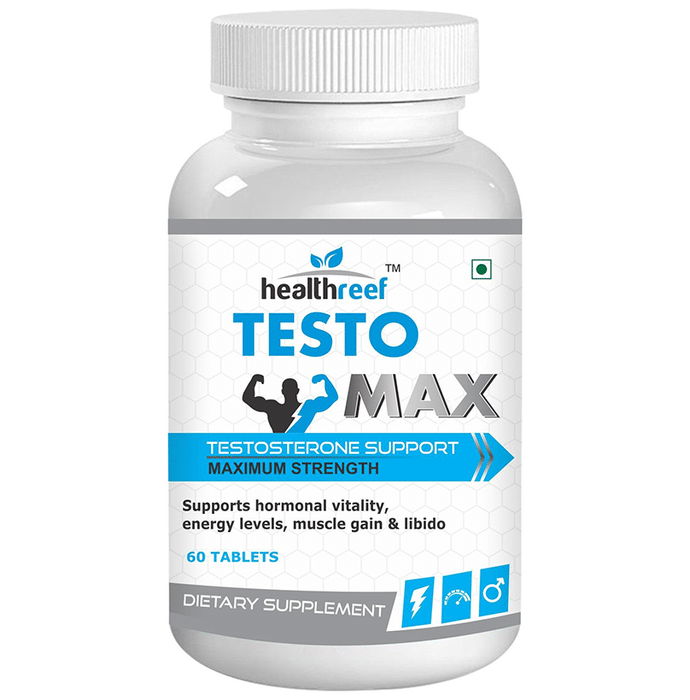 Healthreef Testo Max Tablet Healthreef Testo Max Tablet is designed to work with the body's physiology to support energy levels. It's a natural strength formula, formulated with the full dosage of active ingredients as indicated to be effective by research. This formula addresses all the key factors that maximize the effect and impact of energy levels in the body.