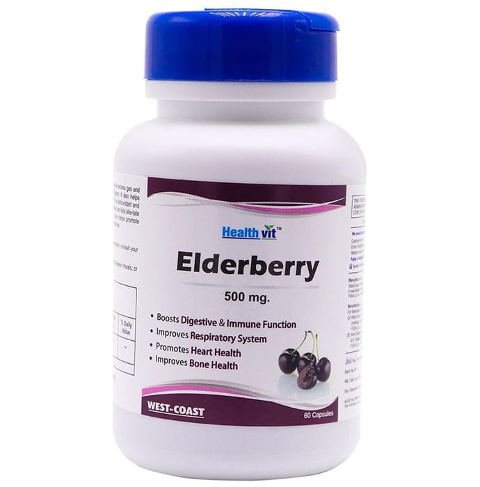 HealthVit Elderberry 500mg Capsule HealthVit Elderberry 500mg Capsule is formulated to facilitate a healthy digestive and immune function. It is beneficial in the case of constipation and excess gas. In addition to this, it helps to promote bone strength and the development of new bone tissue.