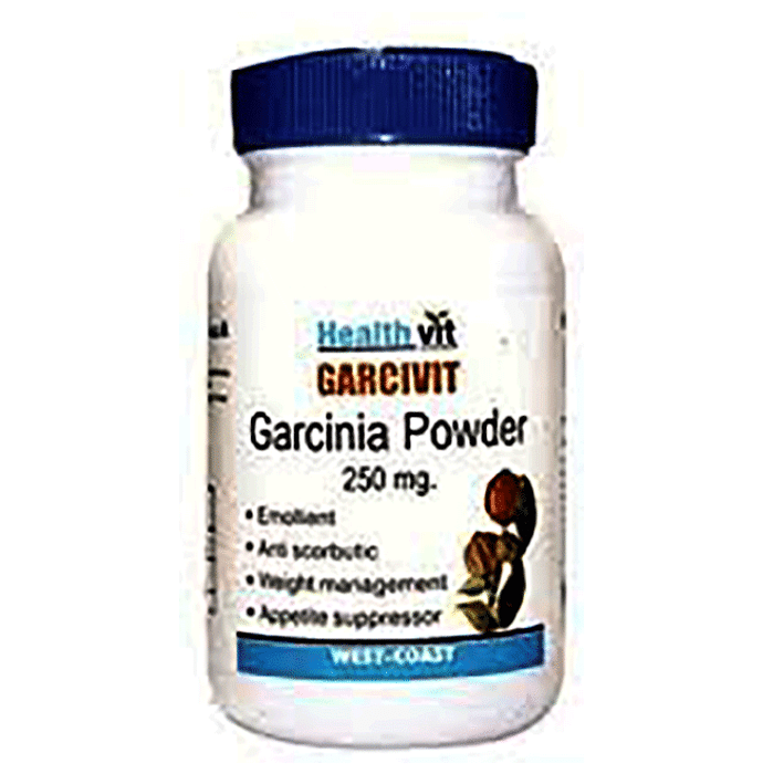 HealthVit Garcivit 250mg Capsule HealthVit Garcivit 250mg capsules contain Garcinia powder. Garcinia is widely used in weight management. Key benefits of HealthVit Garcivit 250mg capsules: Good for weight management. Appetite suppressor. Act as emollient. Suppresses fatty acid synthesis. Improves metabolism. It also treats scurvy. Used for emptying the bowel and in lipogenesis. Direction for use: 1 Capsules daily or as directed by physician. Safety information: Pregnant, nursing women or individual taking any medications, consult the doctor before use. No artificial colours, flavours or preservatives added, no chemical solvents. Use under medical supervision.