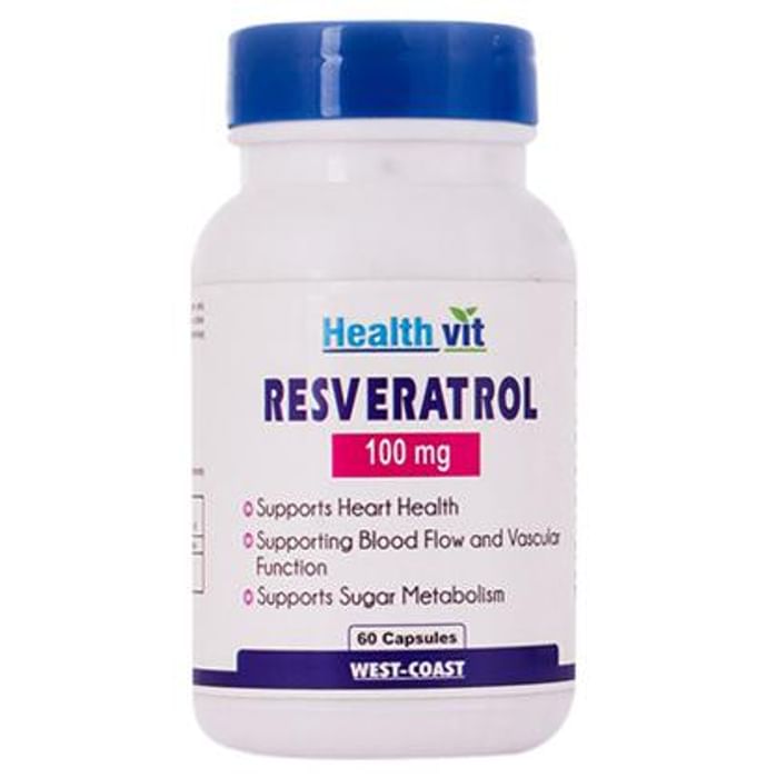 HealthVit Resveratrol 100mg Capsule Healthvit Resveratrol 100mg capsule contains resveratrol and calcium as its active ingredients. Resveratrol is a natural polyphenol found in red wine, peanuts and in some plants including the herb Polygonum cuspidatum. Key benefits of Healthvit Resveratrol 100MG capsule: Promotes cardiovascular and neurological health. Promotes healthy cholestrol and blood pressure. Resveratrol possess anti-oxidant property. Direction for use: As a dietary supplement for adults, 1 or 2 capsules daily, preferably at mealtime, or as directed by the healthcare practitioner. Safety information: Keep out of the reach of children. Pregnant, nursing women or individual taking any medication should consult the doctor before use. Use under medical supervision.
