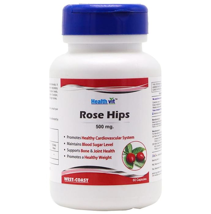 HealthVit Rose Hips 500mg Capsule HealthVit Rose Hips 500mg Capsule is formulated to reduce the joint pain. It is beneficial in providing relief in the case of respiratory conditions. In addition to this, it assists in lowering the cholesterol and blood glucose levels.