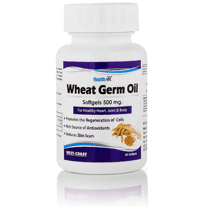 HealthVit Wheat Germ Oil 500mg Softgels Healthvit Wheat Germ Oil Softgels is enriched with natural Vitamin E and Essential Fatty Acid that promote regeneration of cells in our body. It also increases muscles strength and endurance in our body. It has good antioxidant properties and helps in improving blood circulation. It provides good nourishment to your skin and is also effective in the treatment of psoriasis and dry skin. It has anti-ageing properties and is also helpful in improving our immune system. It can be used by both men and women.