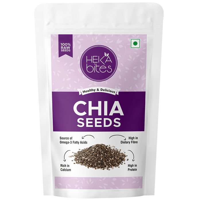Heka Bites Chia Seeds contain healthy omega-3 fatty acids, protein, fibre, antioxidants, and calcium, which can help in weight management, and may also protect skin cells against oxidative damage. These seeds can be consumed as is, soaked and added to porridge, made into pudding, taken with smoothies and juices, or simply sprinkled on top of salads or yoghurt. | Key Ingredients: Raw Chia Seeds | Key Benefits: Rich in omega-3 fatty acids, calcium, fibre and protein which may help maintain heart health and strengthen bones Contains antioxidant properties that can protect skin cells against oxidative damage and keep them healthy Has anti-inflammatory properties and might reduce the risk of heart diseases Might help regulate blood sugar levels, improve digestion, and may help manage diabetes | Directions for Use: Use as directed. | Safety Information: Read the label carefully before use Store in a cool and dry place away from direct sunlight Keep out of reach of children