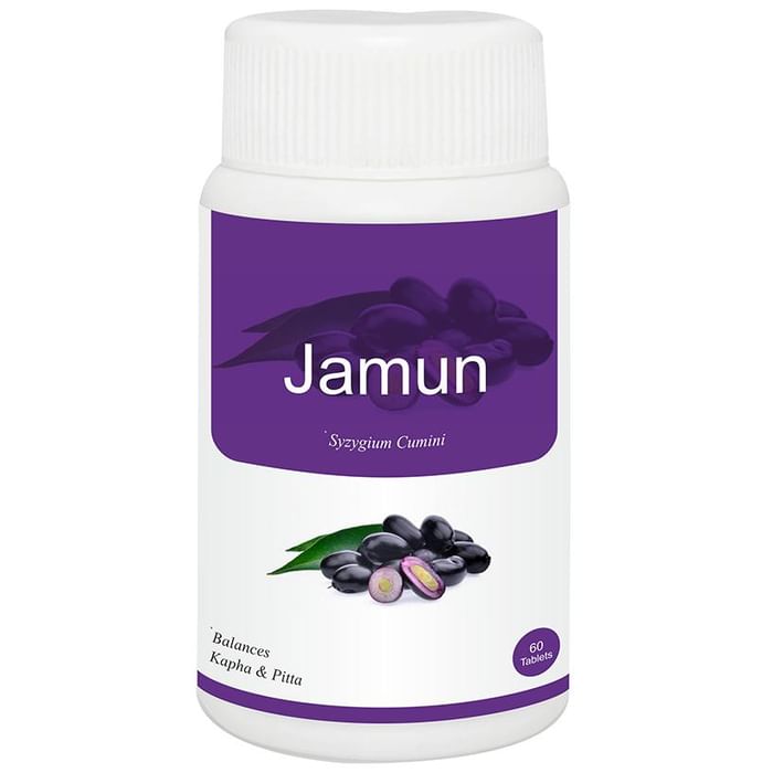Herb Essential Jamun (Syzygium Cumini) 500mg Tablet Herb Essential Jamun Seed Diabetic Care 500mg Tablet is used in the system of medicine to effectively treats a number of health complications. Since ancient times, it has been used as the primary source of treatment for digestive disorders most commonly dysentery and it contains diuretic and antiseptic properties which is used for the treatment of diabetes related ailments such as excessive sweating or urination.