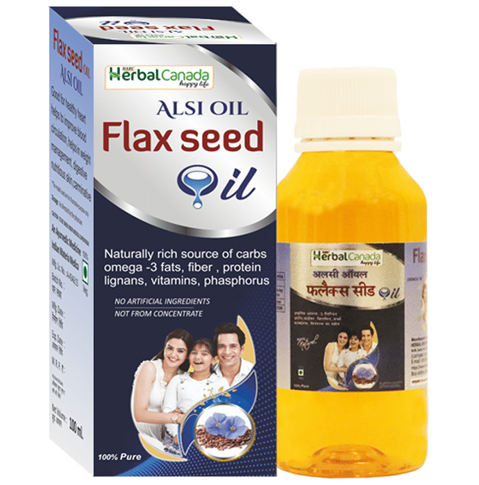Herbal Canada Alsi Oil (Flax Seed Oil) Alsi is also known as linseed; flaxseed oil results from cold-pressing the seeds from the flax plant. It has a rich balance of essential fatty acids, notably omega-3s (ALA) and omega-6s (linoleic acid). Organic flaxseed oil is perhaps one of the best vegan and vegetarian-friendly healthy omega -3 fatty acids sources. | Key Ingredients: Flaxseed oil | Key Benefits: Lignans act as an antioxidant which helps in the regrowth of healthier and stronger hair Flax seed is a naturally rich source of carbs, omega -3 fats, fibre, protein lignans, vitamins, phosphorus. The vitamin E in flaxseed oil helps to treat hair loss and stimulate new hair growth Flax seed oil can be used to improve digestive health, lower blood pressure and bad cholesterol | Directions For Use: Use as directed by your healthcare professional. | Safety Information: Read the label carefully before use Store in a cool and dry place away from direct sunlight Keep it away from the reach of children