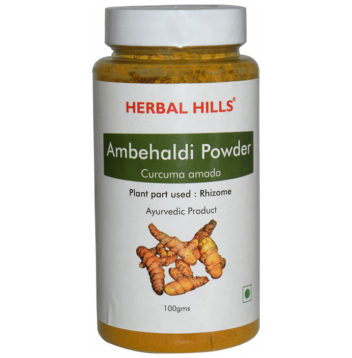 Herbal Hills Ambehaldi Powder contains Ambehaldi (Curcuma aromatica powder) as the active ingredient. Key benefits/uses of Herbal Hills Ambehaldi Powder: Role of active ingredient: Ambehaldi (Curcuma aromatica powder): - Stimulates the production of bile, a digestive juice needed in the digestion of fat - Contains anti-inflammatory & diuretics properties - Supports the healthy digestion in the body and metabolic activities - Helps in the natural removal of toxins from the body - Acts as anti-tussive and provides relief from a cough - Helps to fight free radical damage which is responsible for premature aging of the skin and body due to its antioxidant properties - Reduces the growth of tumor and cancer cells when taken internally - Possess nephroprotective properties and wound healing properties - Useful for the treatment of acne, scars, unwanted hair removal, eczema, hyperpigmentation, dark circles, pimples, skin whitening (lightens spots and scars) and for glowing skin Directions for use/Dosage: - Take 3 gms powder, 1 to 2 times a day or as advised by the physician Safety information: - Read the label carefully before use - Do not exceed the recommended dose - Keep out of the reach and sight of children