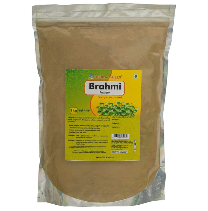 Herbal Hills Brahmi Powder Herbal Hills Brahmi Powder contains Brahmi (Bacopa Monnieri) as the active ingredient. Key benefits/use of Herbal Hills Brahmi Powder: Role of Brahmi (Bacopa Monnieri): - Boosts longevity, improve mental functions & learning an ability - Supports mental clarity, focus, and cognitive capability - Acts as antioxidant - Beneficial for the treatment of fever, fatigue, abdominal pain due to gas formation, nervous disorders, infertility, and bronchitis - Useful in the treatment of inflammation, gout, rheumatism - Useful in the treatment of a cough, and cold - Acts as antistress agent and helps to relieve stress Directions for use/Dosage: - Take 3 gm of Herbal Hills Brahmi Powder, 1 to 2 times a day or as directed by the physician Safety information: - Read the label carefully before use - Do not exceed the recommended dose - Keep out of the reach and sight of children
