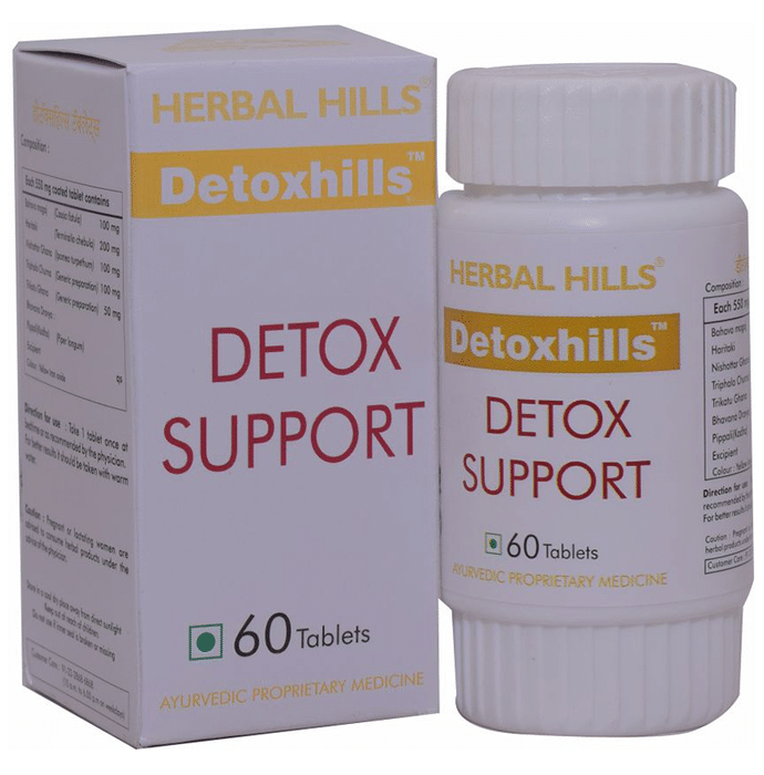 Herbal Hills Detoxhills Detox Support Tablet Herbal Hills Detoxhills Tablet contains Triphala churna, Trikatu, Haritaki, Bahava magaj, Pippali, and Nishottar Ghana as active ingredients. Key benefits/uses of Herbal Hills Detoxhills Tablet: - Supports normal bowel functions - Helps in detoxifying digestive toxins and aids the digestion - Helps in the treatment of constipation - Posses Antioxidant property Directions for use/Dosage: - Take 1 to 2 tablets once at bedtime or as directed by the physician Indication: - Constipation Safety information: - Read the label carefully before use - Do not exceed the recommended dose - Keep out of the reach and sight of children