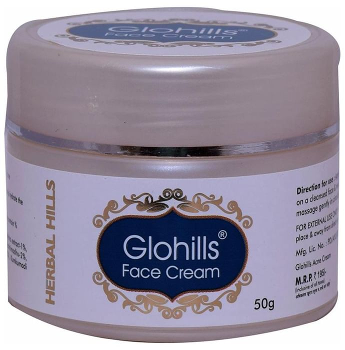 Herbal Hills Glohills Cream Herbal Hills Glohills Cream contains Shalmali, Yashtimadhu, Kumkumadi tail, Nimba, Haridra, Sariva, and Kumari, Yashad bhasma, and Tankan bhasma as active ingredients. Key benefits/uses of Herbal Hills Glohills Cream: - Helps to regulate melanin, controls dark pigmentation and post-acne mark on the skin - Delays age-related skin changes and supports glowing skin - Helps in the smoothening of skin - Possess cooling properties and beneficial for skin Directions for use/Dosage: Smooth on cleansed face. Use morning & night on the cleansed face or as directed by the physician. Indication: - Skin care Safety information: - For External use only - Read the label carefully before use - Keep out of the reach and sight of children
