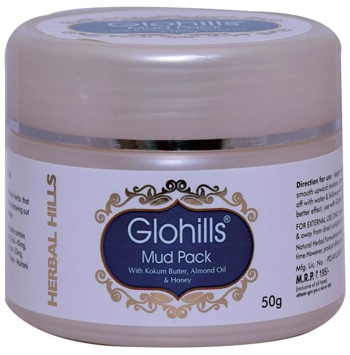 Herbal Hills Glohills Mud Pack Herbal Hills Glohills Mud Pack Powder contains Haldi, Neem, Tulsi, Kokum butter, Almond oil, Arjuna, Honey, Aloe vera, Multani mitti, Glycerine, and Water as active ingredients. Key benefits/uses of Herbal Hills Glohills Mud Pack Powder: - Helps to clear blemishes - Reduces the pimple outbreak - Maintains optimal skin moisture - Acts as an astringent - Acts as a cleansing agent and stimulates the skin cell renewal - Provides even skin tone and helps in the soothing of skin texture Directions for use/Dosage: - Apply lavishly over cleansed face and leave it for 20 minutes then rinse off with water or as directed by the physician Indication: - Skin care Safety information: - For external use only - Read the label carefully before use - Keep out of the reach and sight of children