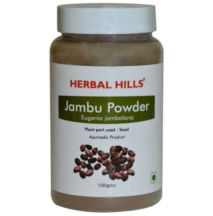 Herbal Hills Jambu Beej Powder contains Jambu Beej (Eugenia Jambolana) as active ingredient. Key benefits/uses of Herbal Hills Jambu Beej Powder: Role of active ingredient: Jambu Beej (Eugenia Jambolana): - Acts as astringent - Acts as digestive and liver stimulant - Helps in glucose metabolism and maintains sugar level in the blood - Help detoxify the body and lower blood pressures Directions for use/Dosage: - Take 3 gms powder, 1 to 2 times a day or as advised by the physician Safety information: - Read the label carefully before use - Do not exceed the recommended dose - Keep out of the reach and sight of children