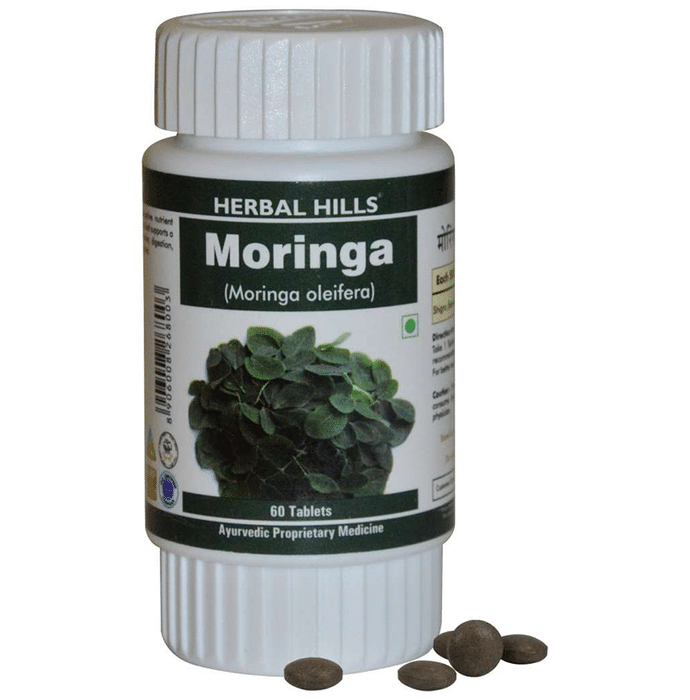 Herbal Hills Moringa 500mg Tablet Herbal Hills Moringa Tablet contains Powder of Shigru leaves as active ingredients. Key benefits/uses of Herbal Hills Moringa Tablet: Role of active ingredients: Powder of Shigru leaves: - Acts as an antioxidant & anti-inflammatory agent - Helps bone and joint wellness - Boost immune system, energy levels and improve vitality, focus, and stamina - Maintain blood pressure levels within a normal range Directions for use/Dosage: - Take 1 tablet twice daily or as directed by the physician Safety information: - Read the label carefully before use - Do not exceed the recommended dose - Keep out of the reach and sight of children