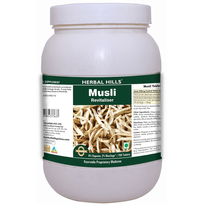 Herbal Hills Musli Revitaliser Tablet Herbal Hills Musli Revitaliser Tablet can rejuvenate and revitalise the body and senses. It has aphrodisiac properties that may help boost the sexual health of men. It has adaptogenic properties that may help adapt the body against the harshness of the environment. It can also help combat free radicals in the body.