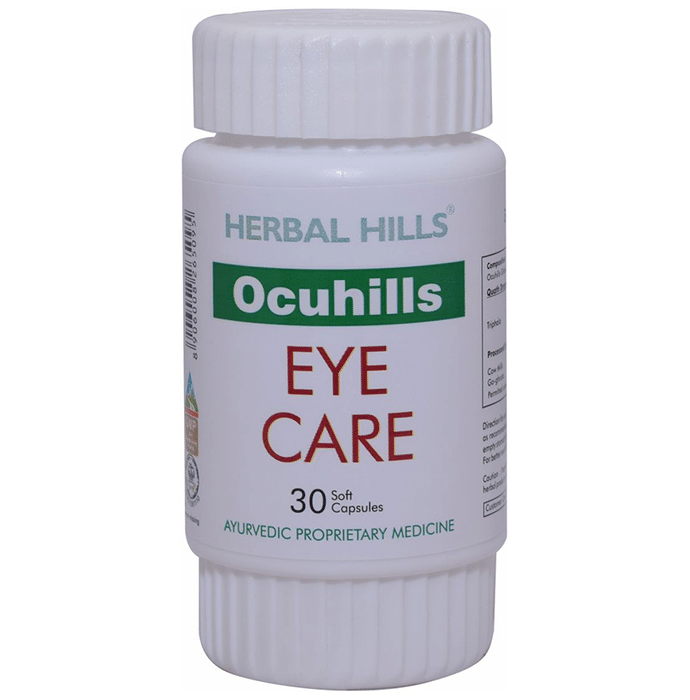 Herbal Hills Ocuhills Eye Care Soft Gel Capsules Herbal Hills Ocuhills Capsule contains Triphala and cow ghee as the active ingredient. Key benefits/uses of Herbal Hills Ocuhills Capsule: - Acts as the natural antioxidant - Detoxifies the digestive tract and improves the body metabolism which is helpful to the eyes - Helps to reduce the risk of damage caused by the free radicals to the eyes - Acts as the rejuvenator and it protects the eyes - Boosts immunity and purifies the blood - Acts as the anti-inflammatory as it reduces the inflammation of eyes and also acts as anti-allergic - Regulates the eyesight in the patients suffering from diabetes - Provides the protection to the eyes from damage caused by sun/dust - Provides the nourishment to the microchannel of the eye thereby protects the normal eye vision Directions for use/Dosage: - Take 2 Soft gel capsules once a day in the morning or as directed by the physician. Indication: - Eye disorders Safety information: - Read the label carefully before use - Do not exceed the recommended dose - Keep out of the reach and sight of children