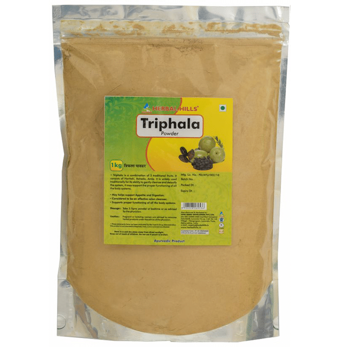 Herbal Hills Triphala Powder Herbal Hills Triphala Powder is formulated to achieve a healthy digestive system. The product contains triphala as the main ingredient which is beneficial in the case of constipation, flatulence, and abdominal pain. Moreover, it also works on promoting the bowel movements.