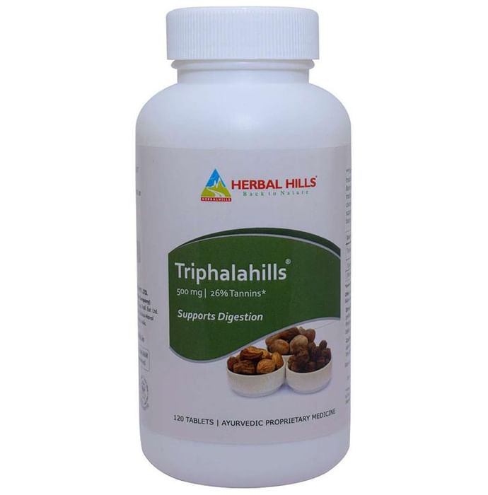 Herbal Hills Triphalahills 500mg Tablet Herbal Hills Triphalahills Tablet takes complete care of your digestive system and improves your overall health. This Triphala tablet, made with the extract of three fruits, Haritaki, Baheda and Amla is widely used as a laxative. It also has other health benefits like improving the overall health of the body by acting as a powerful stimulant in detoxification of the body. It also supports healthy blood circulation.