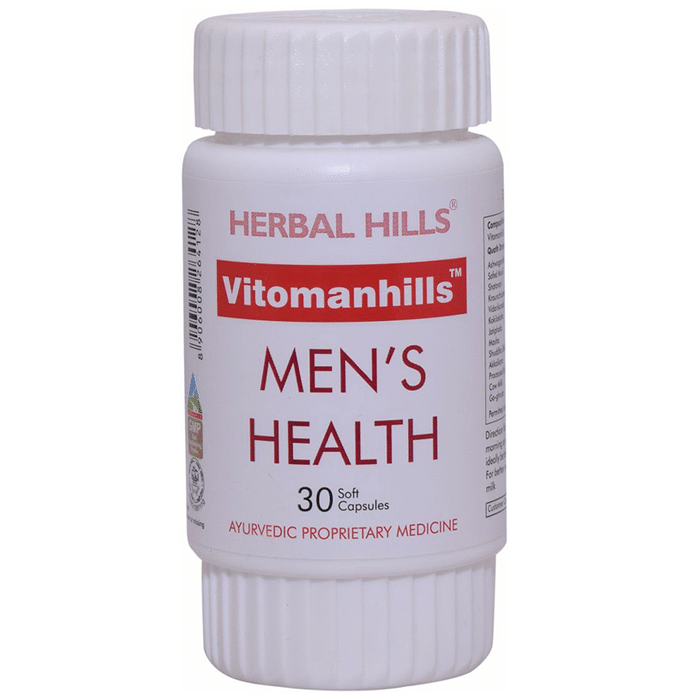 Herbal Hills Vitomanhills Men's Health Soft Gel Capsules Herbal Hills Vitomanhills Soft Gel Capsule is a powerful combination of aphrodisiac herbs and is developed for improving the health of the male reproductive system and improve sexual performance. This medicine helps to maintain a healthy balance between the nervous system, immune system and endocrine glands. It also reduces the harmful effects of long-term stress on the body. The capsule supports in toning the muscles and male vitality. It has immuno-stimulant aphrodisiac, energizing, rejuvenating & revitalizing properties.