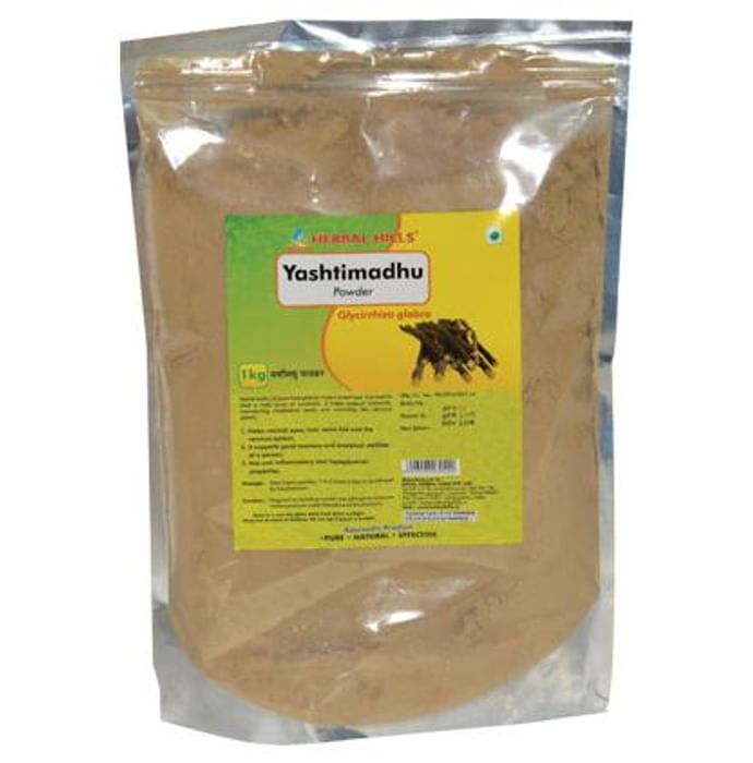 Herbal Hills Yashtimadhu Powder contains glycyrrhizic acid which is excellent for the adrenal glands. It aids to support healthy digestion keeping all digestive troubles away. It is a natural tonic that promotes improved liver and respiratory system health. It is useful in keeping the skin healthy and radiant. It is also indicated for support of oral health. | Key Ingredients: Yashtimadhu Powder | Key Benefits: Its expectorant properties aids in relief from cough It has digestive and carminative properties promoting healthy digestion Its hypoglycemic properties facilitates in lowering lipid level Supports a healthy immune system and maintains cholesterol levels A natural tonic that promotes a healthy liver and respiratory system It is excellent for skin health and promotes radiant skin | Directions For Use: Take 3 grams powder, 1 to 2 times a day or as advised by the physician. | Safety Information: Read the label carefully before use Keep out of the reach of children Do not exceed the recommended dose Use under medical supervision Store in a cool dry place away from direct sunlight and heat